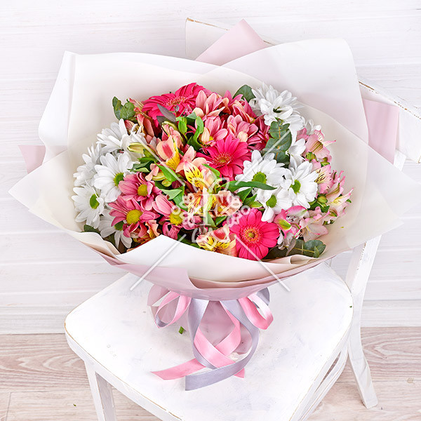 Цветочный романс – букет из гербер, хризантем и альстромерий